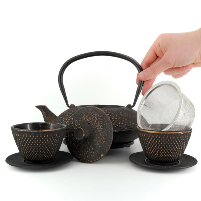 TAKUMI Tetsubin Komplett-Set Gusseisenkanne 1100 ml Schwarzgold